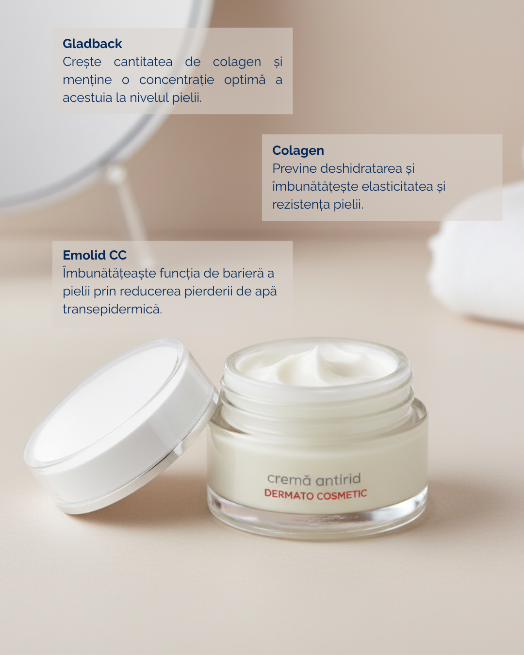 Previne deshidratarea si imbunatateste elasticitatea si rezistenta pielii.